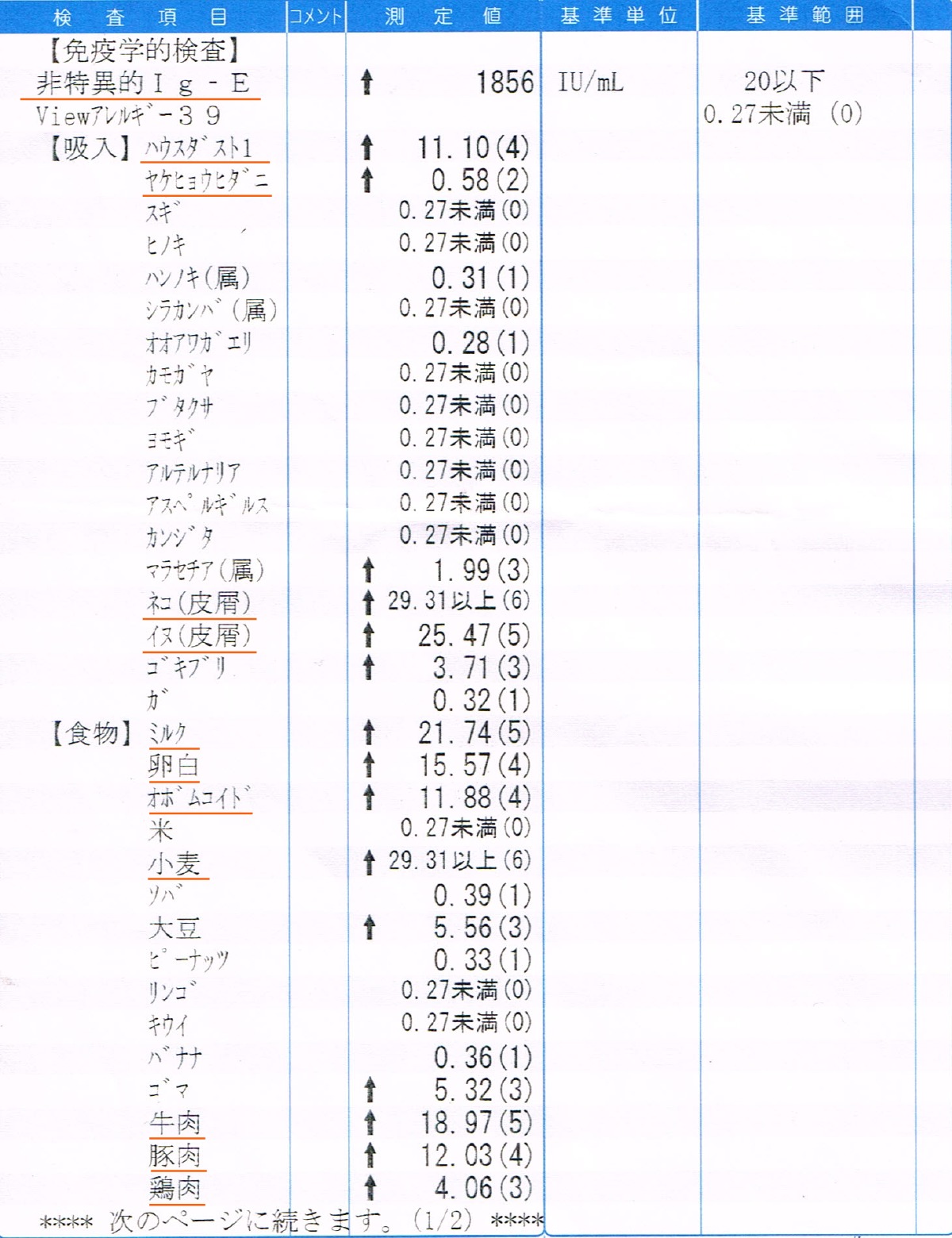 この数値が高いと、アレルギー体質であるということらしいです。