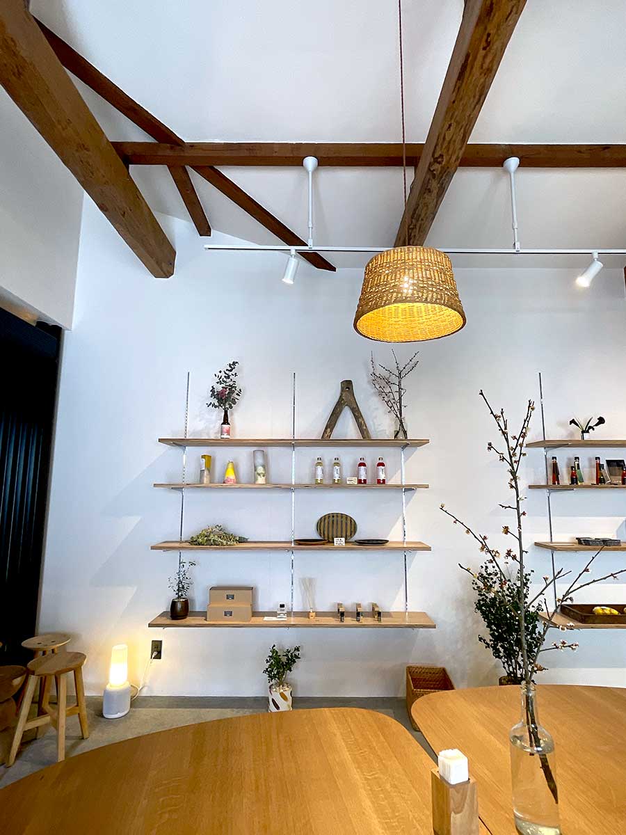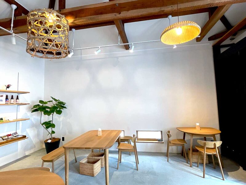 黒を基調としていた外観からはうって変って、白と木を基調とした爽やかでおしゃれな空間。