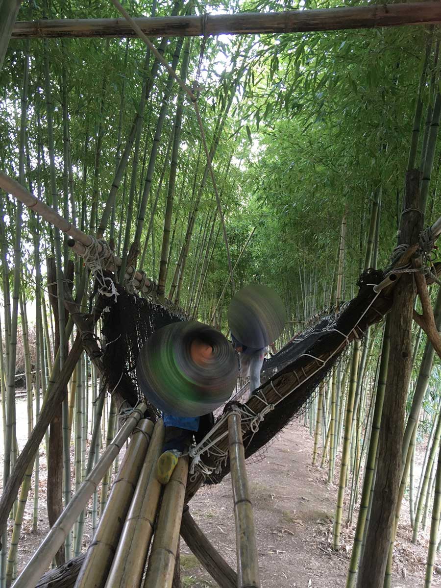 里山の自然の中で、じっくり植物や昆虫を観察したり、ハンモックにゆられたり、忍者のように竹林を駆けたり、パークの中を飛んだり跳ねたり、自由に遊んでください。