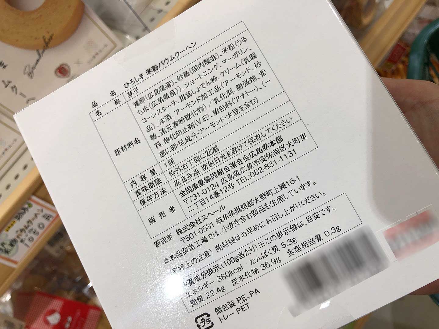先日ご紹介した『ひろしま米粉バウムクーヘン』