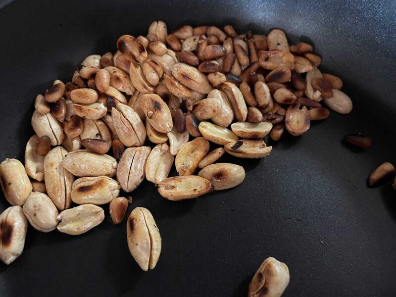 まずは松の実とピーナッツを炒めて