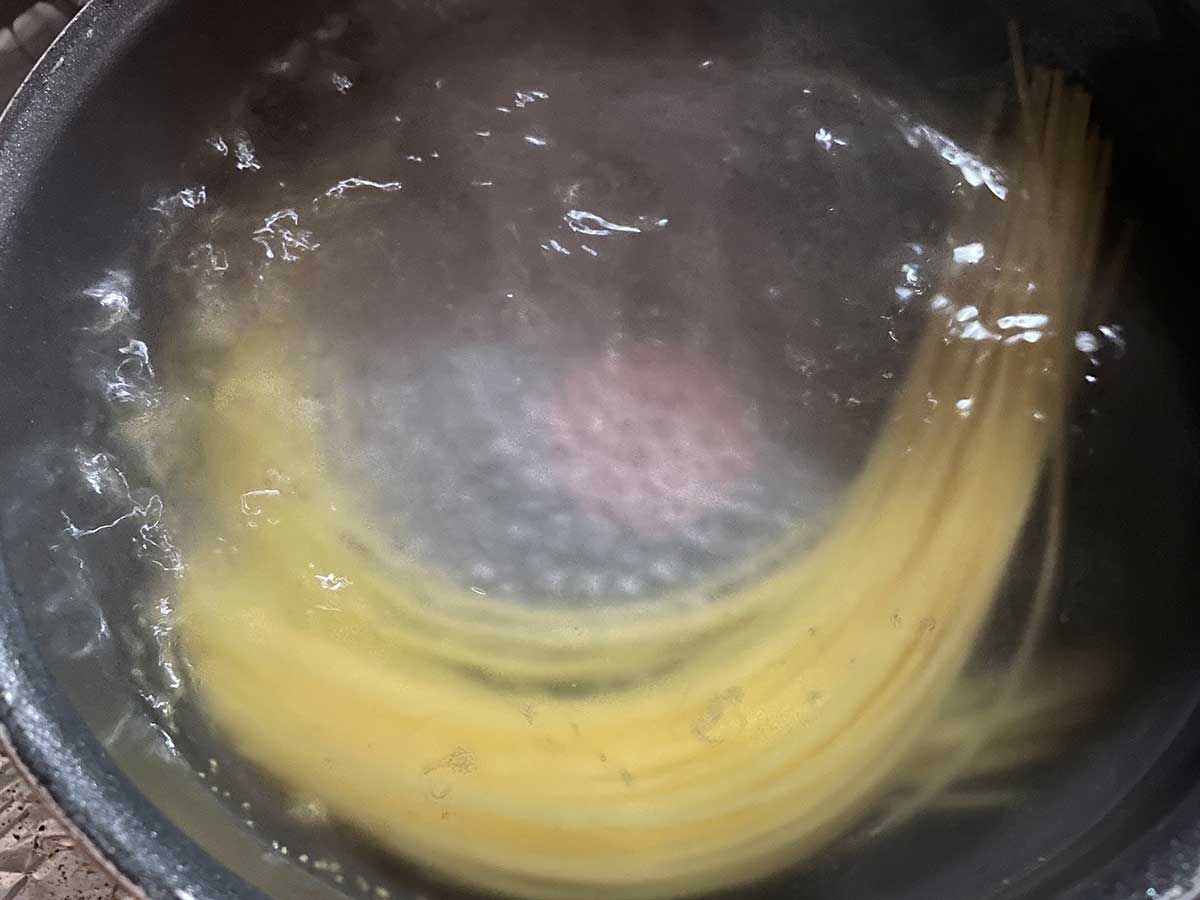 良い感じにソースが出来上がったらパスタを茹でます。