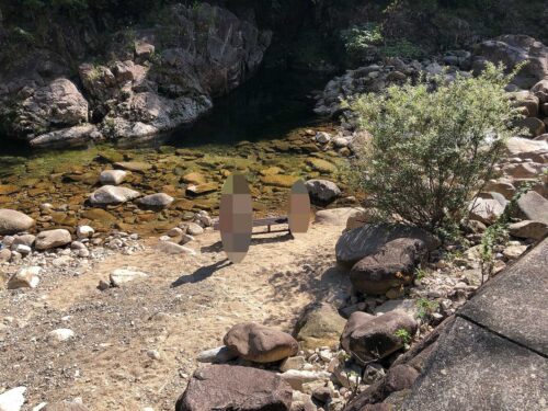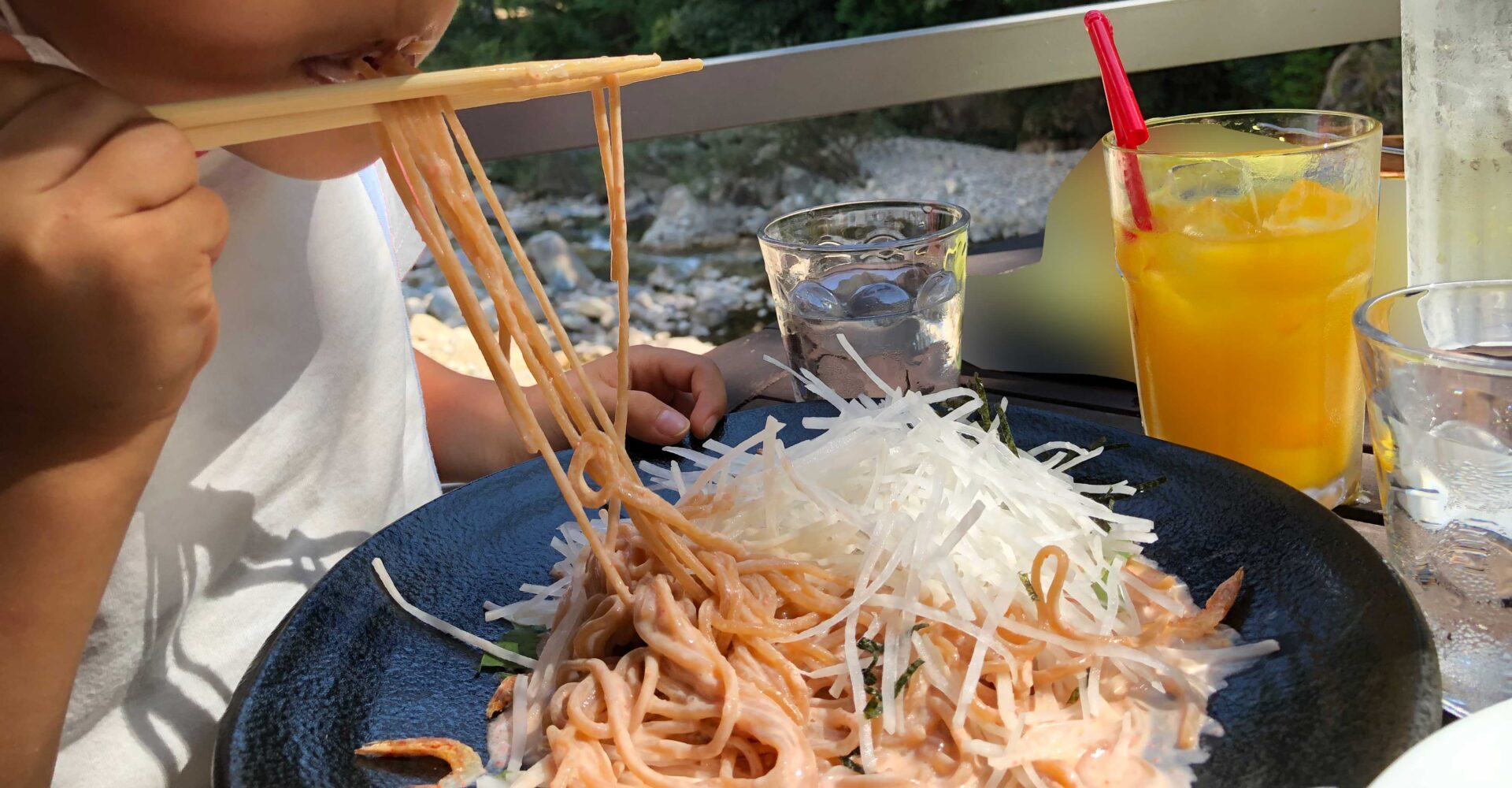 食べた後はお店の下で川遊び♫