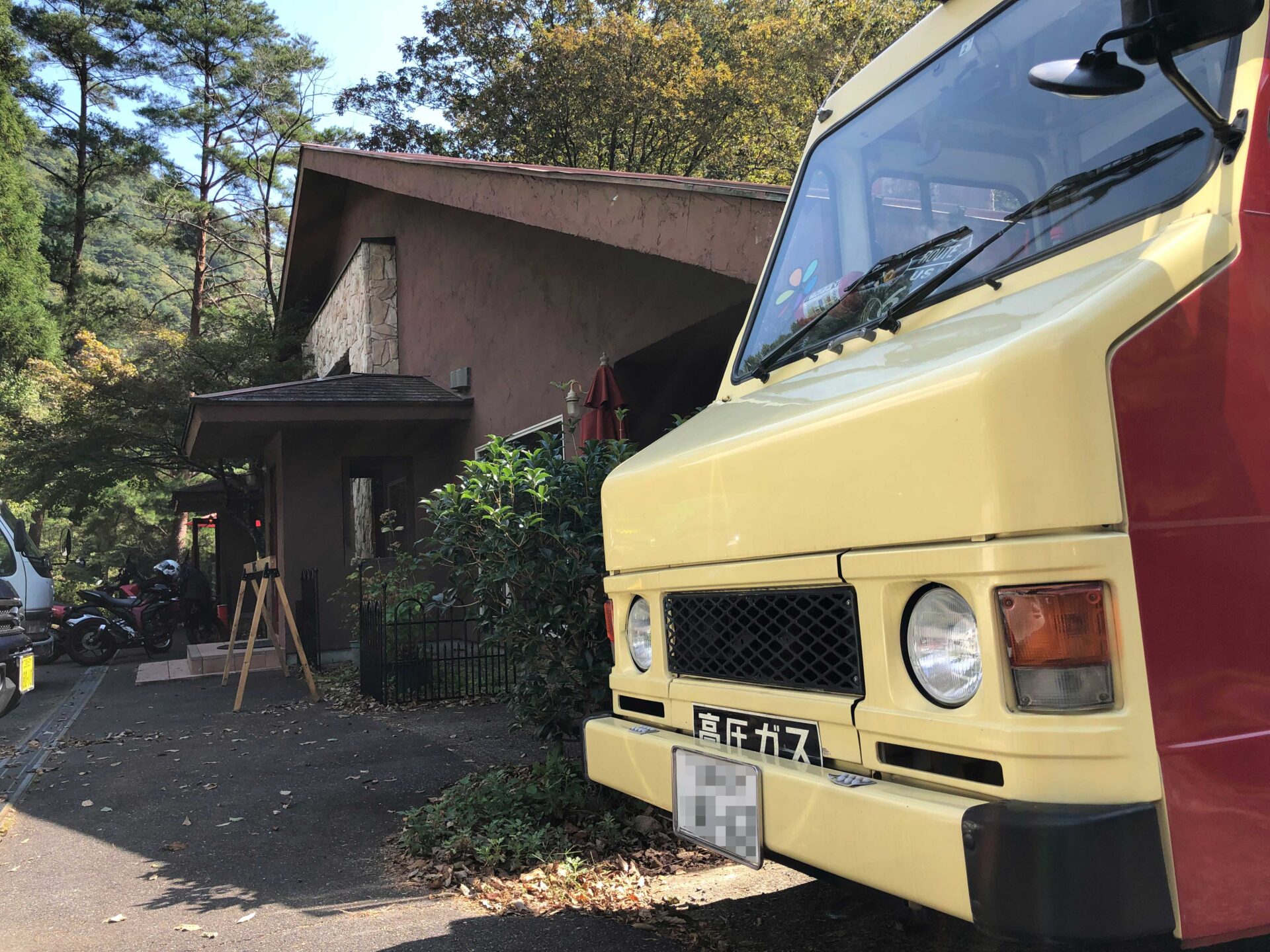 車で広島市内から1時間〜1時間半くらいで、木々に囲まれた森の中にお店を発見👍