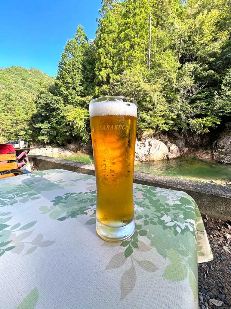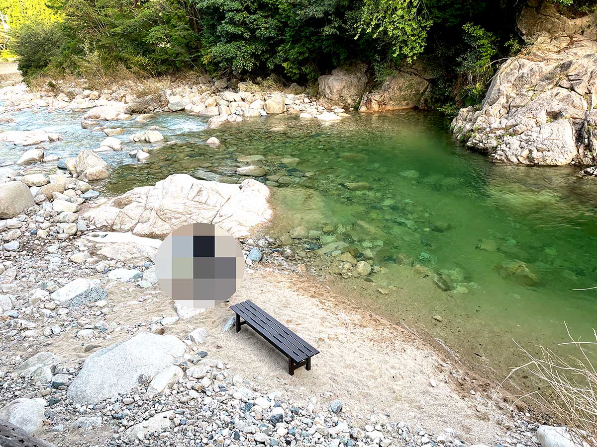 少し影が出てきていた時間帯だったので、風が涼しい川沿いのスペースに座らせて頂きました。