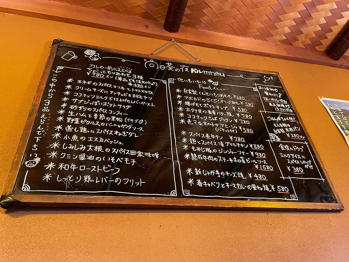 カレー&バル 向日葵(ひまわり)さんのカレーメニュー