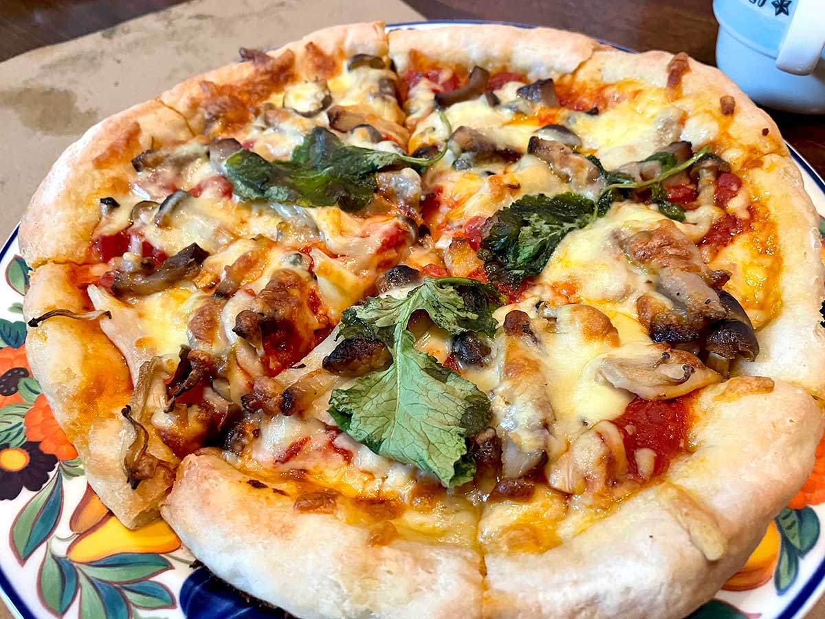 Ai kitchen(アイ キッチン)さんの米粉自家製ベーコンマルゲリータピザ