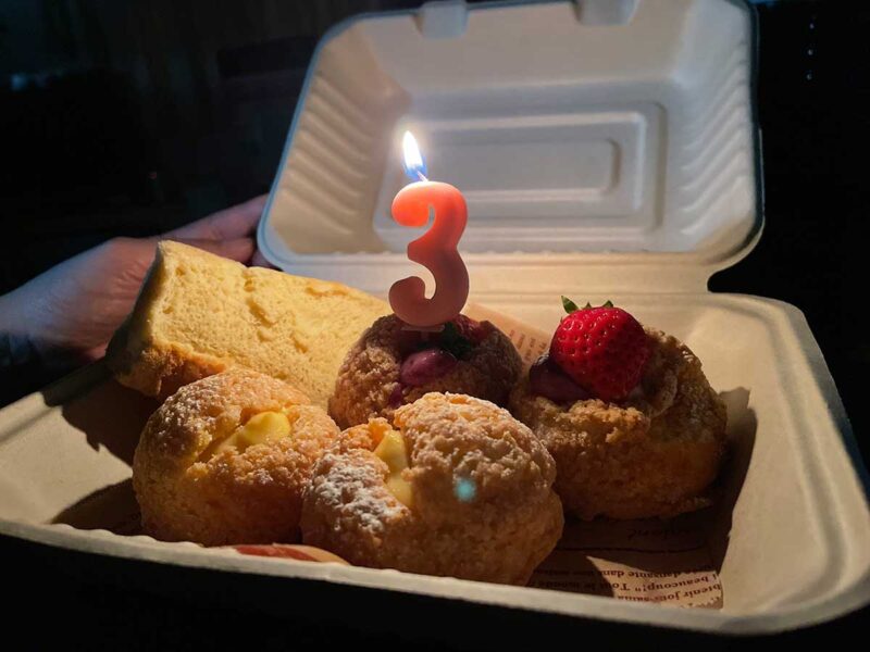 で、〆は誕生日ケーキならぬ誕生日シュークリーム。