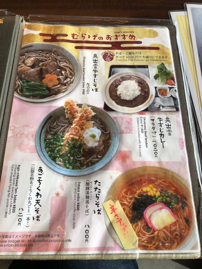 お蕎麦以外にも、こだわりの卵かけご飯や奥出雲牛の牛すじ丼、天丼、カツ丼、牛すじカレーなどバラエティ豊か❗️(これらの食物アレルギーのチェックはしていません💦)
