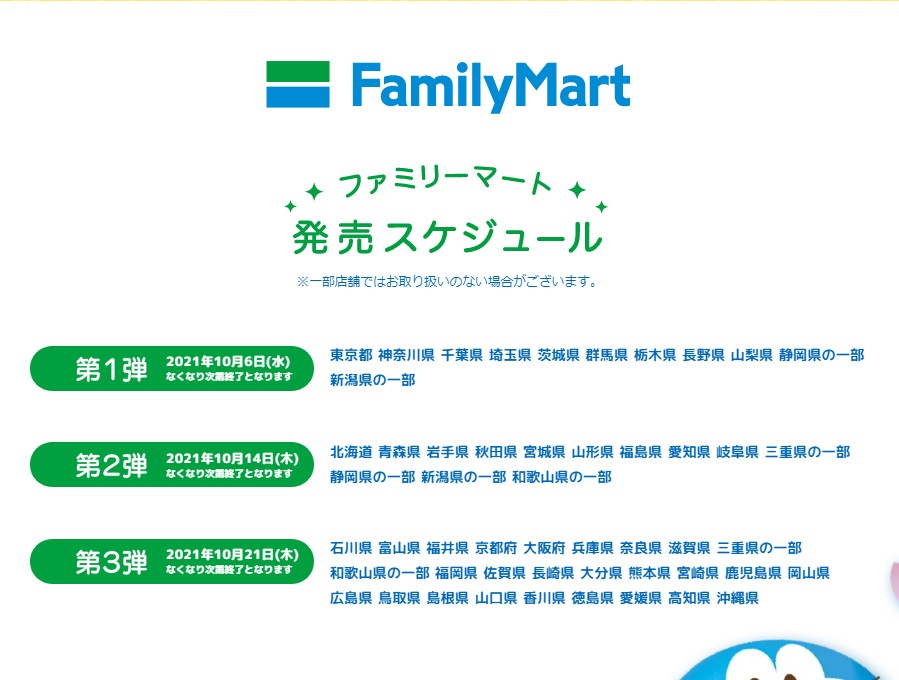 全国各地のファミリーマートとローソンで購入可能ですが、一部店舗では取扱いが無かったり、期間限定販売なので商品がなくなり次第終了します。