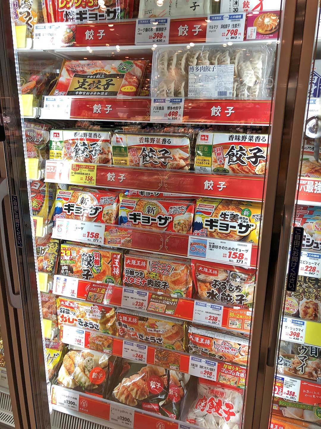 「加工食品コーナーに井辻食品さんの商品があるという事は・・・ワンチャン餃子屋龍さんのグルテンフリー餃子があるかも!」と冷凍庫の前に立つも