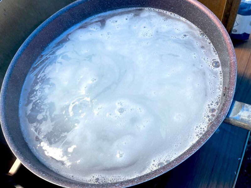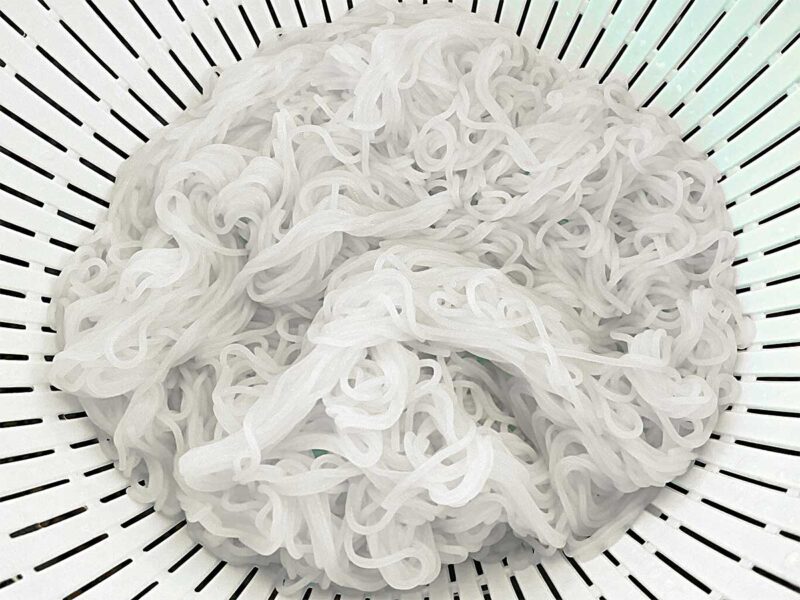 ちなみに、麺を茹でるお鍋や湯切りをするザルですが、自然保護の観点から洗剤を使用しておりません。