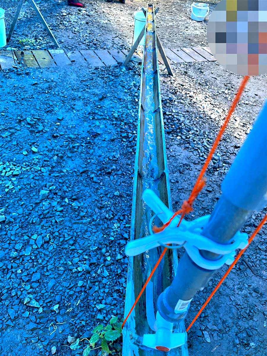 ブルーシートで日除けされたスペースで流しそうめんが楽しめます。