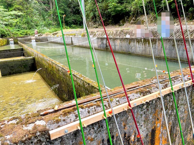 川魚の釣り堀やつかみ取りの施設があり、釣ったお魚を塩焼きにして食べたり、流しそうめんをしたり、川水を引いた天然水プールなどがあります。