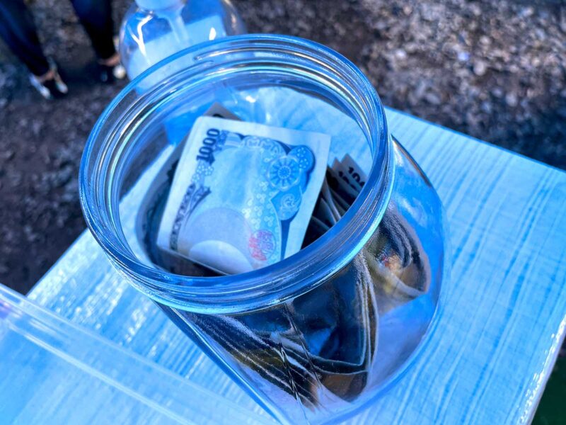 つかみ取りは魚がニュルニュルするので捕まえるのは難易度高めですが、長い板を貸してくれるのでその板を利用して魚たちを隅に囲い込むと比較的捕まえやすいです。