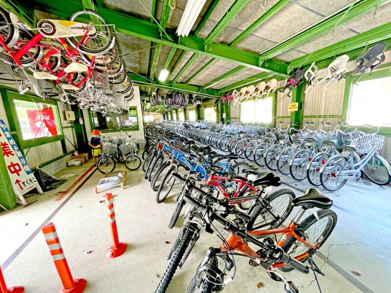 沢山ある子供用~大人用の自転車の中から好きな自転車を選びスタッフさんに申告。