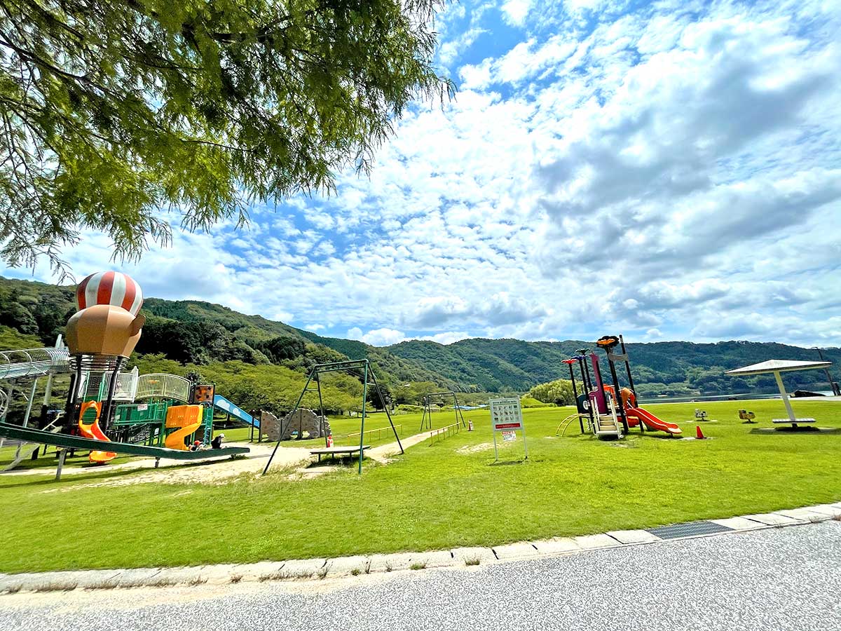 土師ダムはダムが見れるのはもちろん、少し離れたところに「土師ダムサイクリングターミナル」という施設があり、そこを拠点としてサイクリングをしたりカヌー&ボートをしたりグラウンドゴルフをしたり小川近くの公園で遊んだりサイクル列車に乗ったり館内で食事をしたりできます。