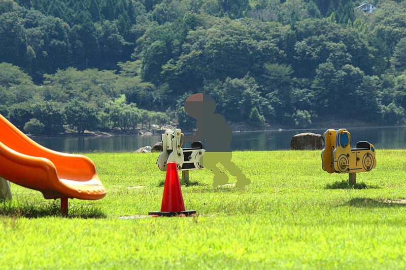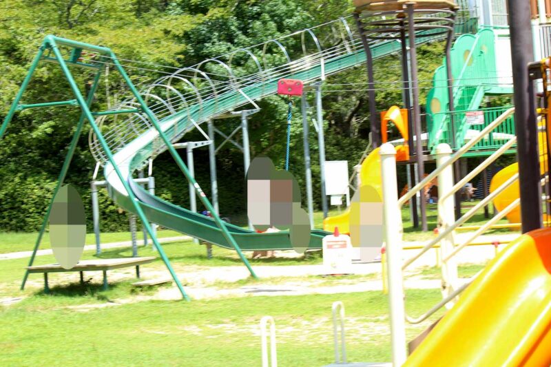 コースの半ばまで来ると大型遊具のある広場に着きますので、こちらで遊びつつシートを張ってランチタイム♪