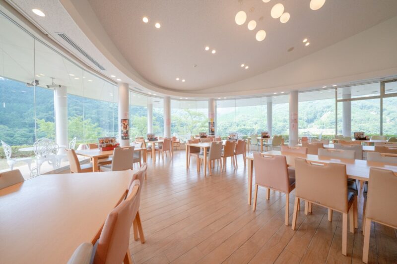 こちらのレストランでは、目の前に広がる八千代湖を眺めながらお食事が楽しめます。