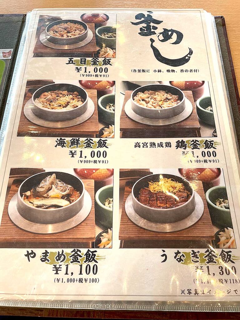 店員さんににいちゃんの小麦アレルギーについてお話しさせてもらったところ、ひとまず「握り寿司盛合わせ」、「北広島町産ささゆりポーク重」、「薩摩赤鶏使用親子丼」はいけるとのことでしたので、握り寿司盛合わせをオーダー。
