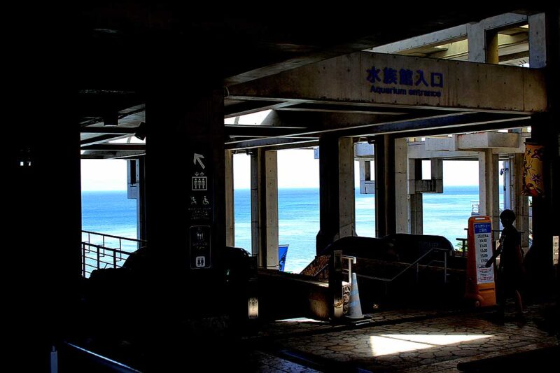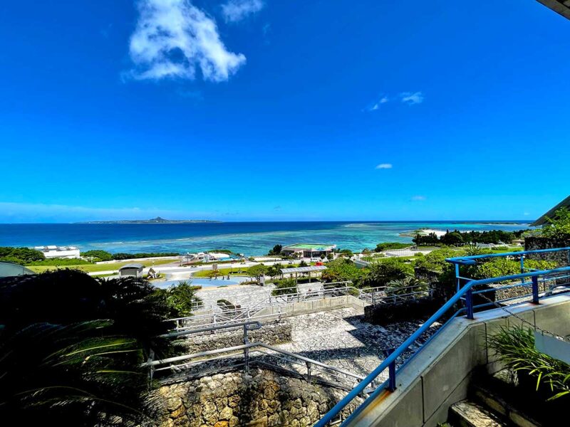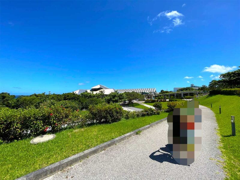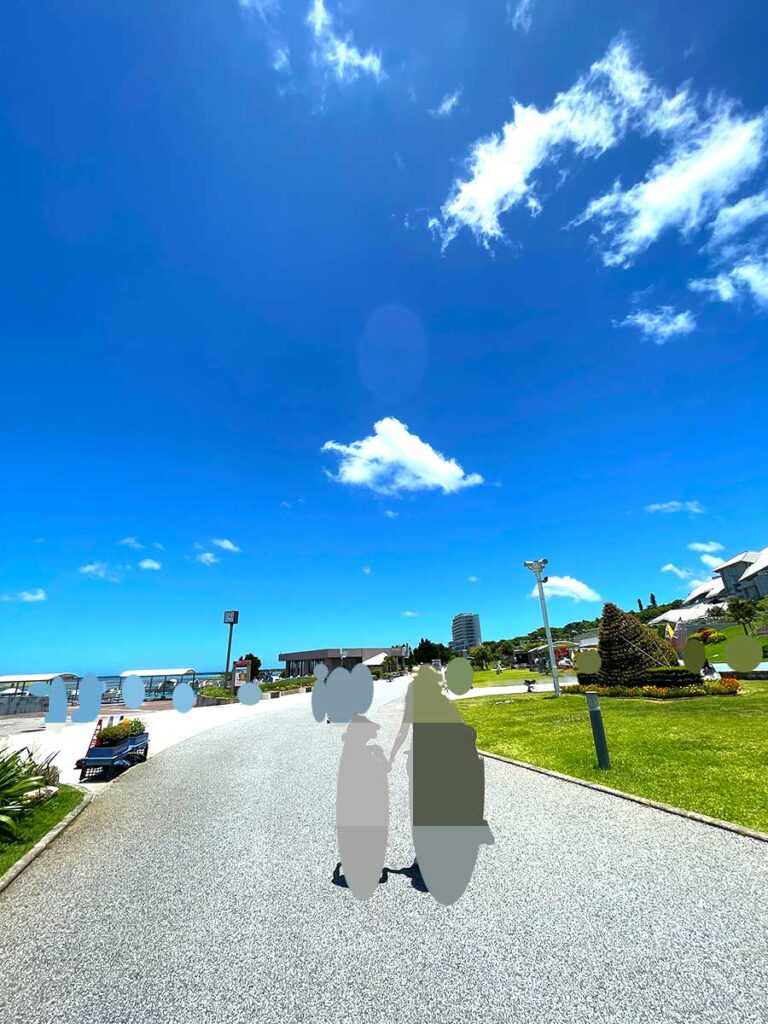 駐車場から水族館の建物まで少し歩きます。子どもと歩いて10〜15分くらい。ただ空と海の景色が最高すぎて、歩くのがまったく苦になりません。