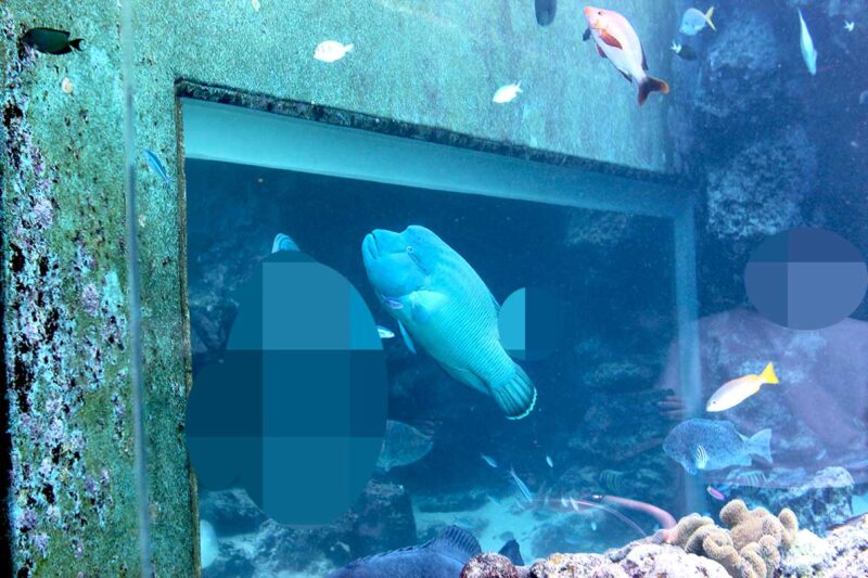 巨大水槽の前にカフェがあって、ゆっくりお茶しながら眺められるのですが、この日はすごい行列でした。早めの時間帯を狙うのがよさそうです。