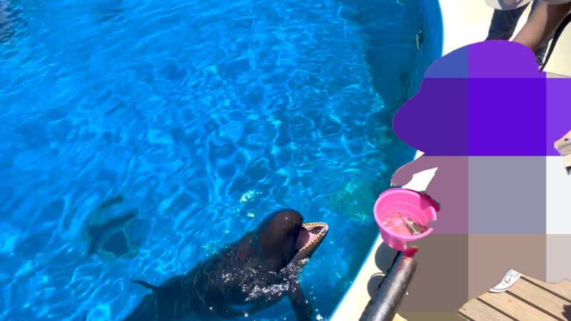 イルカの餌付け体験|長男は大喜び、次男はギャン泣き