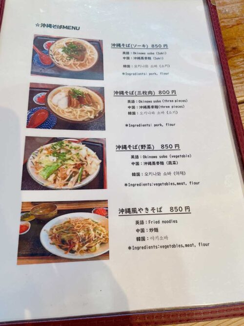 タコライスを注文すると、なんとミニ沖縄そばもついてきました。小麦麺なのでにぃちゃんはゴメンねーという感じでしたが(汗)